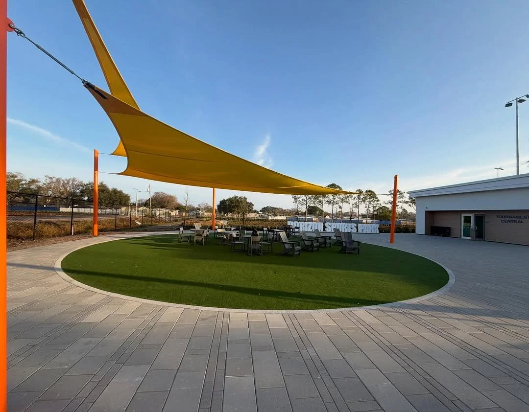 In addition to new sports fields, the park also features a central plaza, new concession stand, and playground | Sprowls Horizon Sports Park