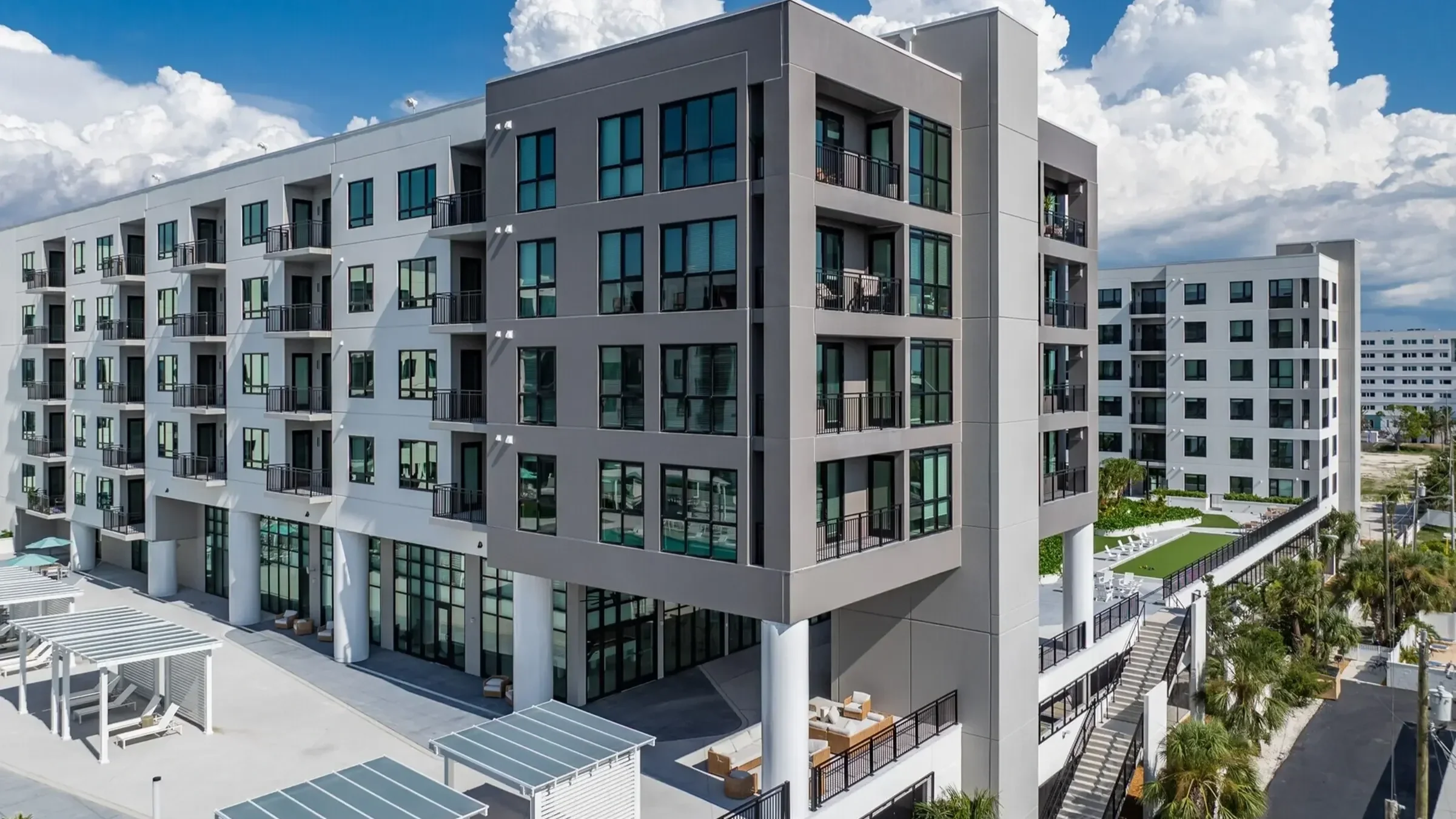 The eight-story apartment building, located at 4341 34th Street South and overlooking Boca Ciega Bay, was developed by Jack Dougherty of Allied Group Holdings and built by Skanska USA.