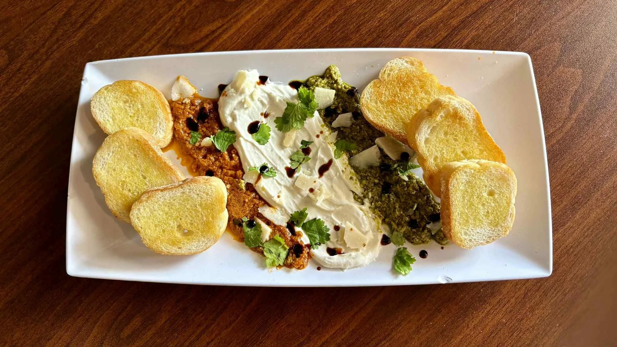 bruschetta served with green and red pesto and goat cheese | st. pete rising