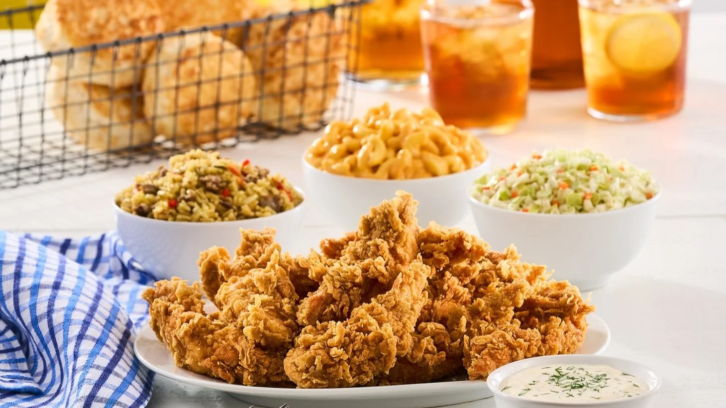 bojangles’ fried chicken tenders, sides, biscuits, and sweet tea | bojangles