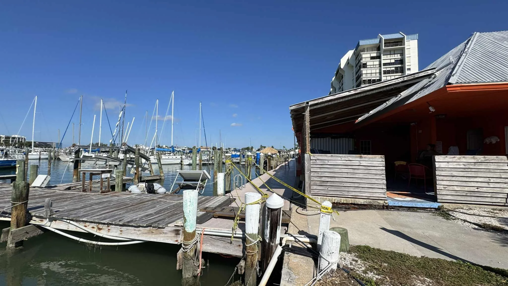 The storm-damaged marina and boardwalk connecting to the former hippie shack restaurant, which is blocked off due to safety concerns | st. pete rising