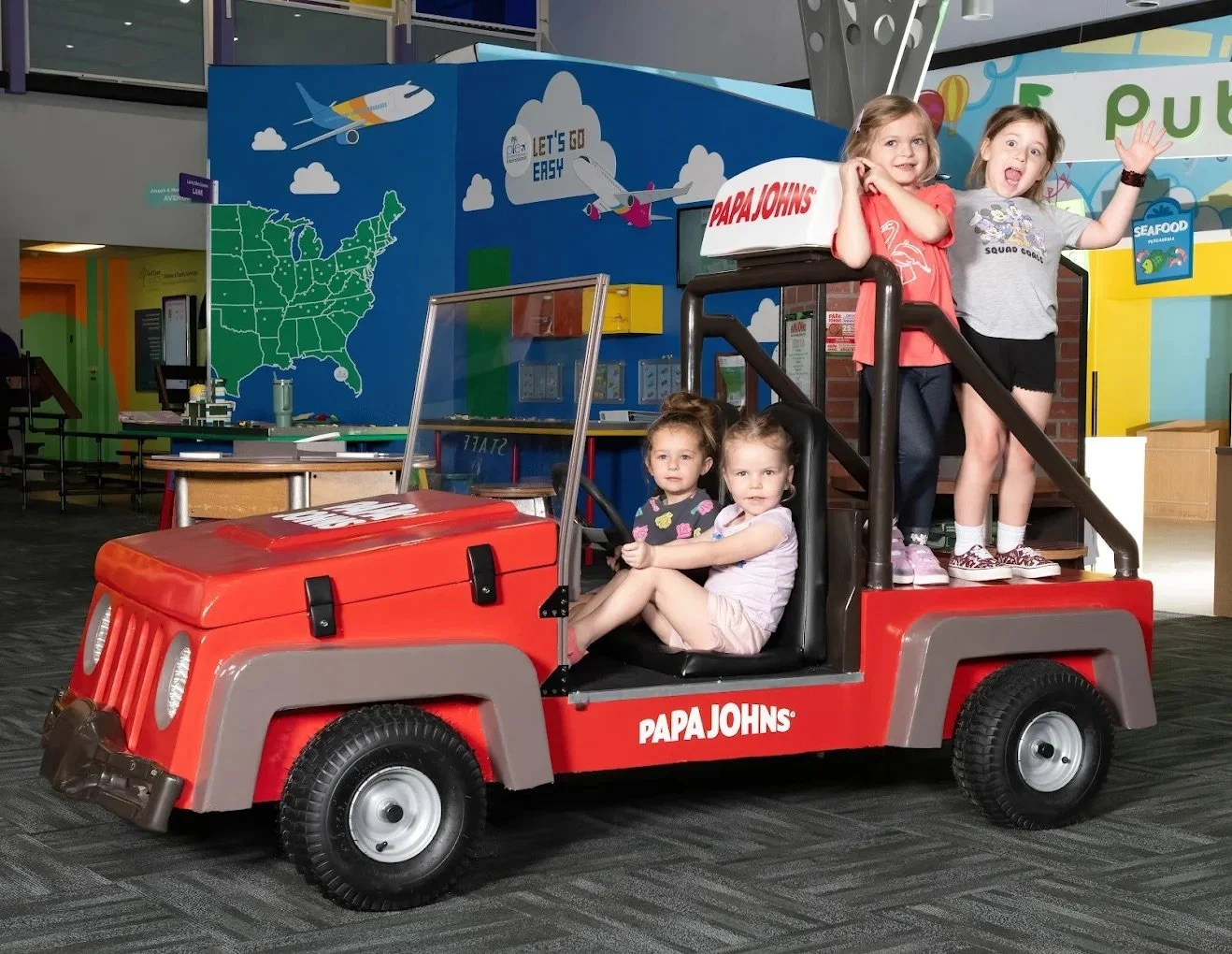 Children can shop in a mini grocery store, role-play as doctors, build, tinker, and experiment, all while learning through play.