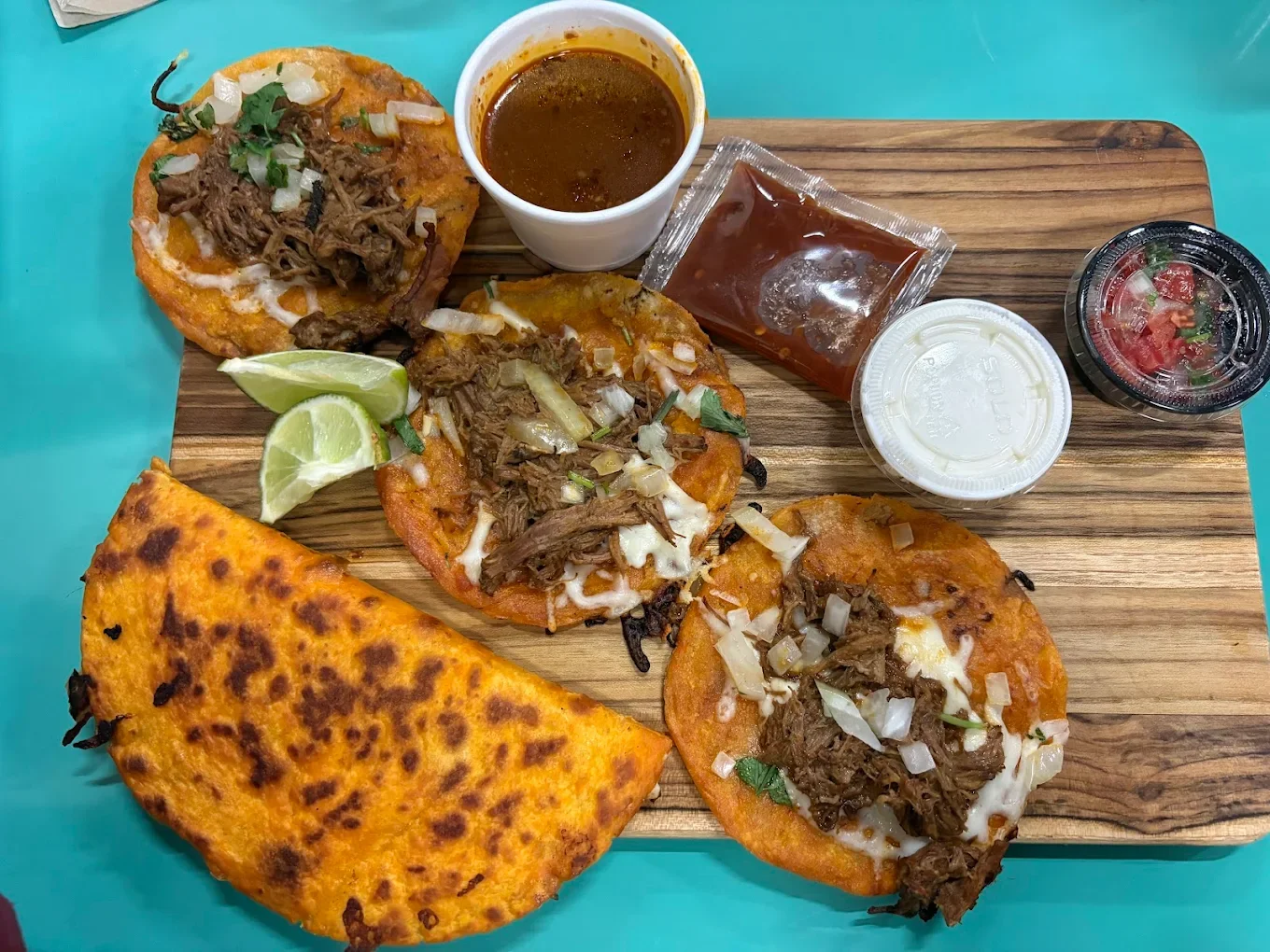 At the heart of that menu are the quesabirria tacos, widely considered the restaurant’s most popular offering.