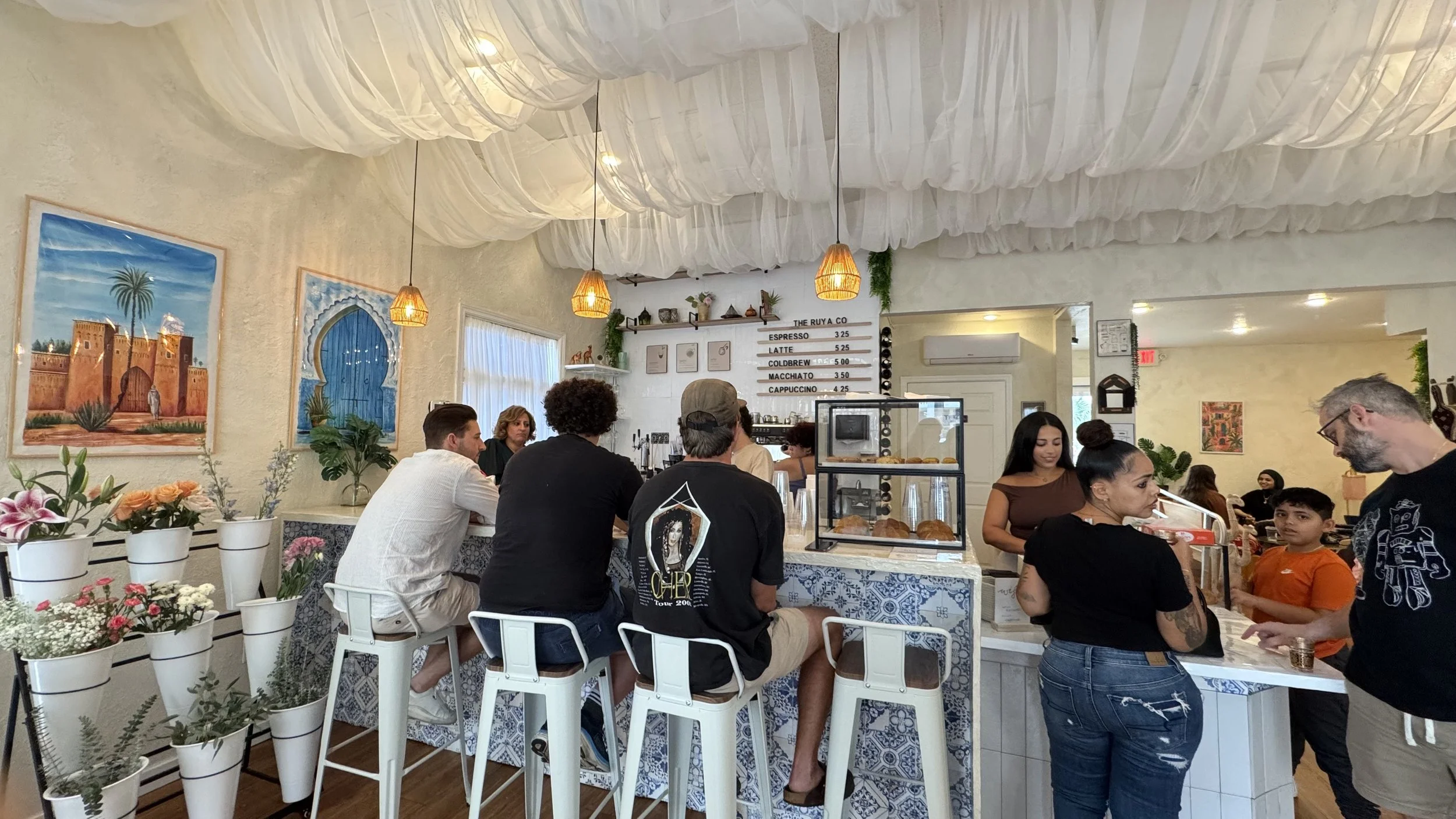 An enclosed glass display contains pastries from a local bakery, and Aitcadi plans to introduce a menu of small plates featuring Moroccan-inspired dishes.