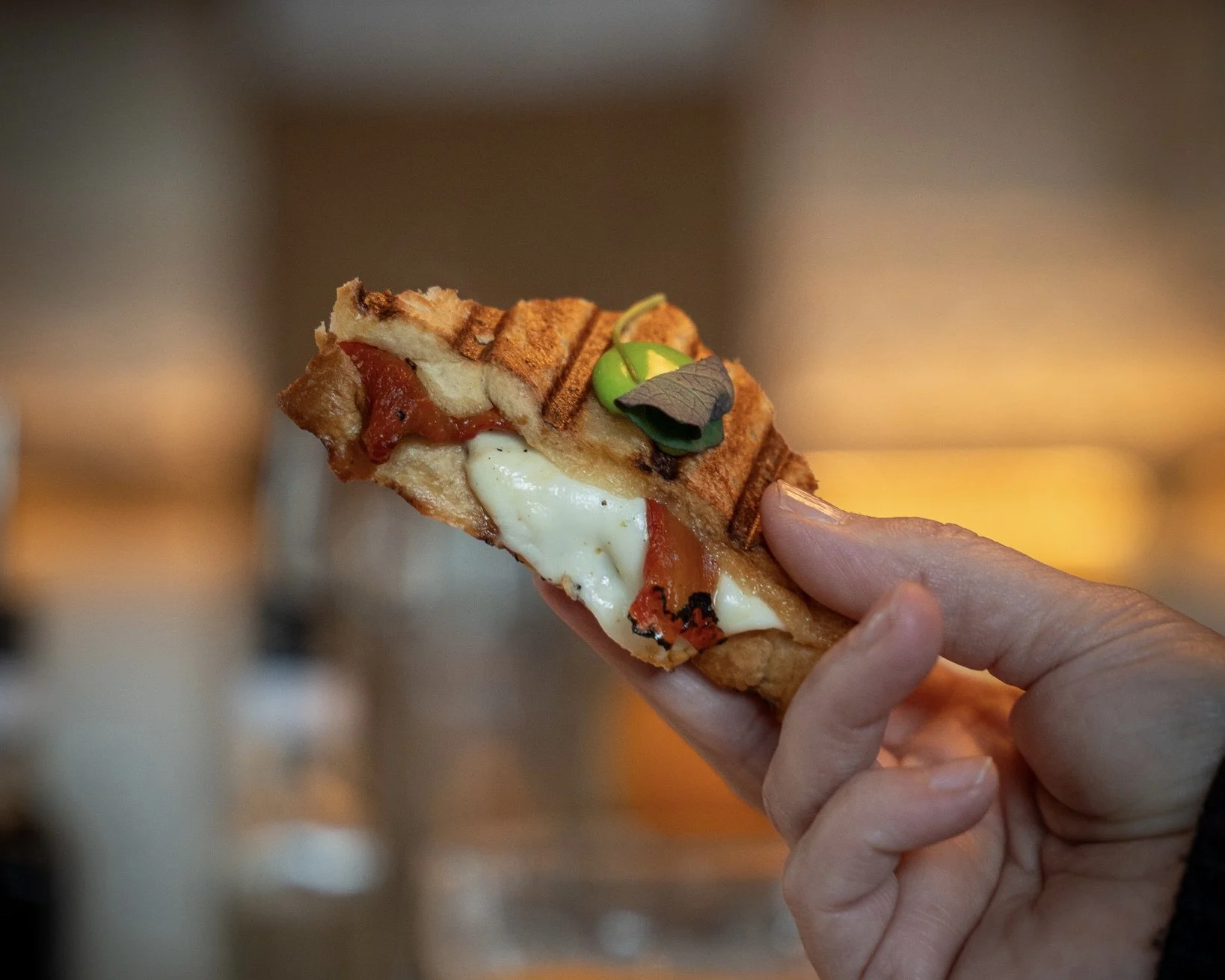 Barra-Barra’s Bikini Sandwich, which contains Rioja-braised oxtail, mozzarella, and nasturtium | Eddie Allen