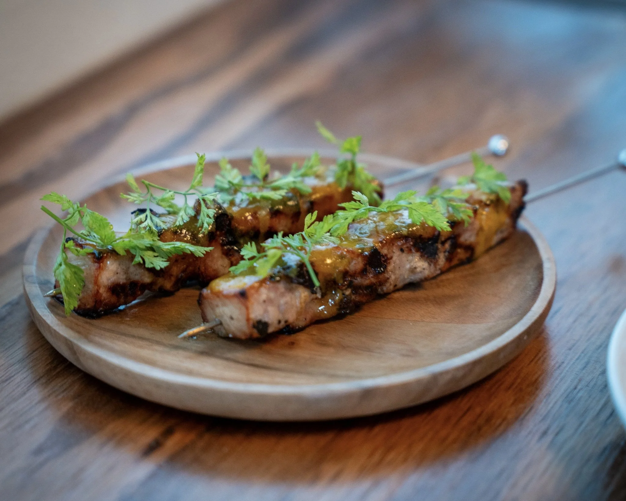Barra-Barra’s Grill Pork Secreto with yogurt marinade, almond, burnt pineapple ketchup | Eddie Allen