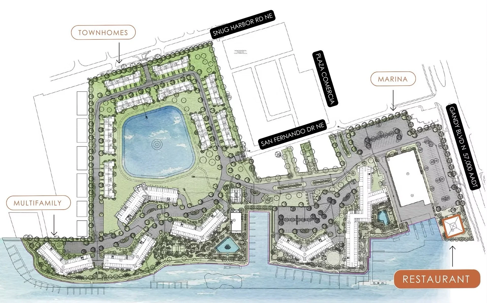 Site plan for the 39-acre Amara Bay Residences & Marina at 12000 Gandy Boulevard in north St. pete | ACRE