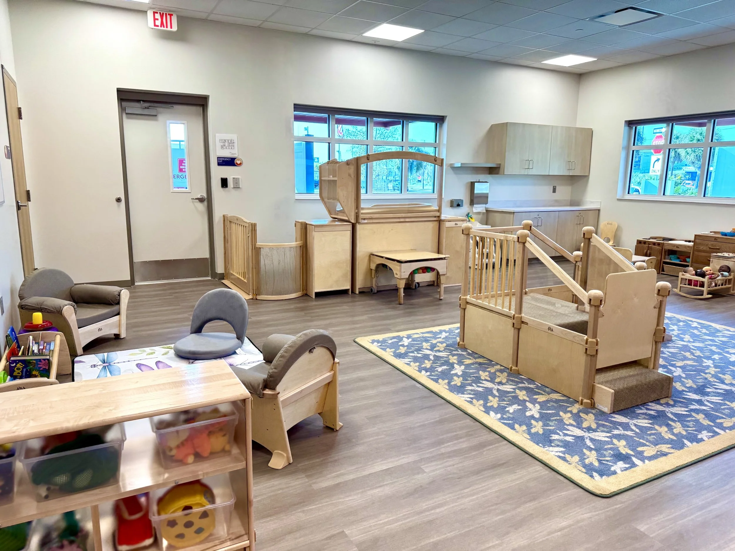 The classrooms are specifically designed for different age groups, serving children two months to five years old.
