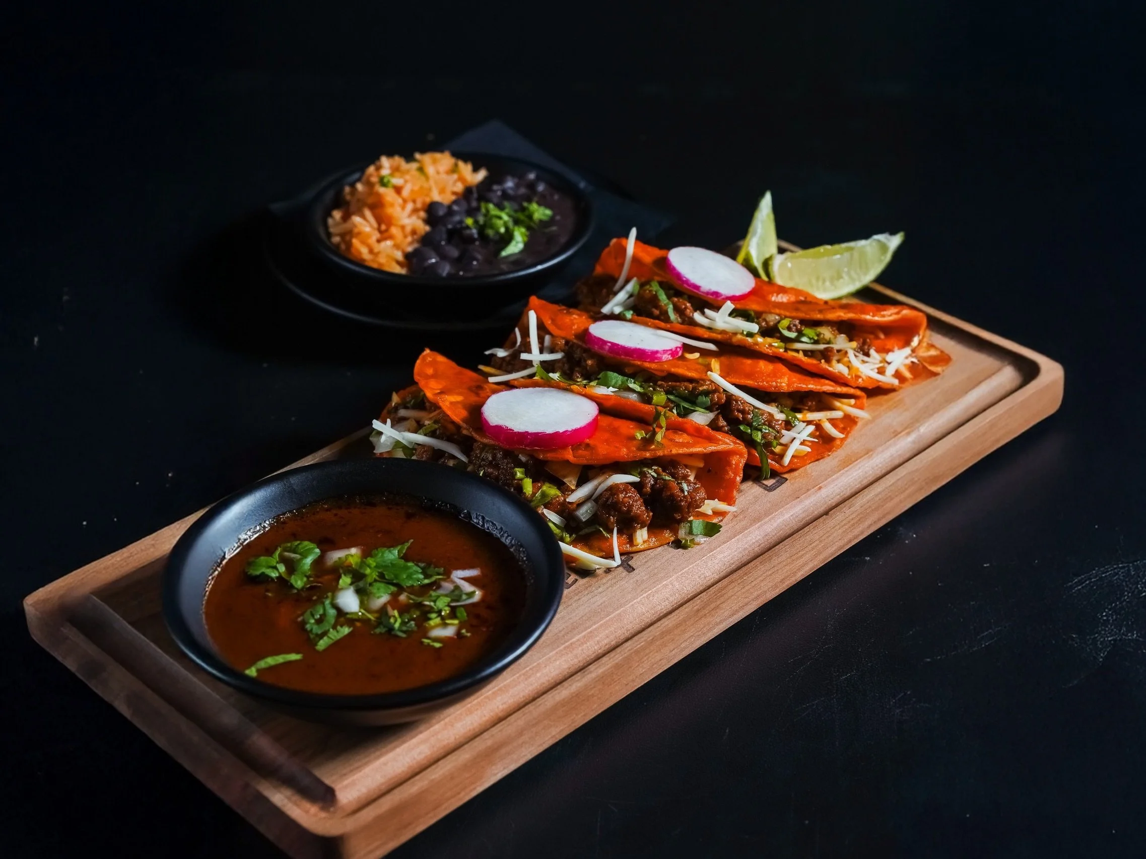 The menu also includes vegan options, such as plant-based fajitas served in a pineapple, vegan birria tacos, bowls, and burritos made with Impossible beef.