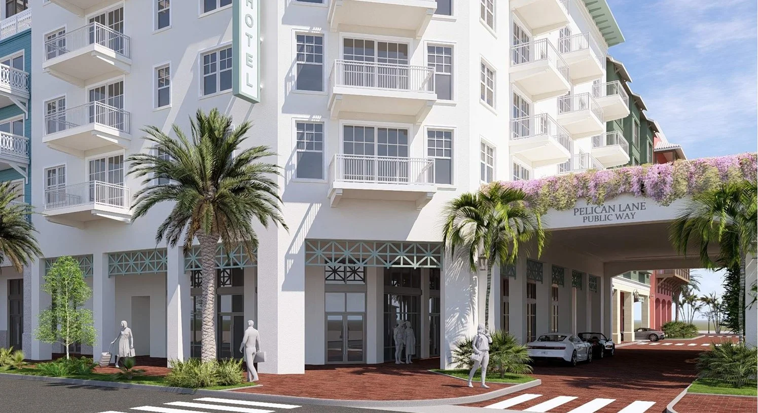 The proposal also calls for extending Pelican Lane to the hotel entrance and partially vacating Fisherman’s Alley.