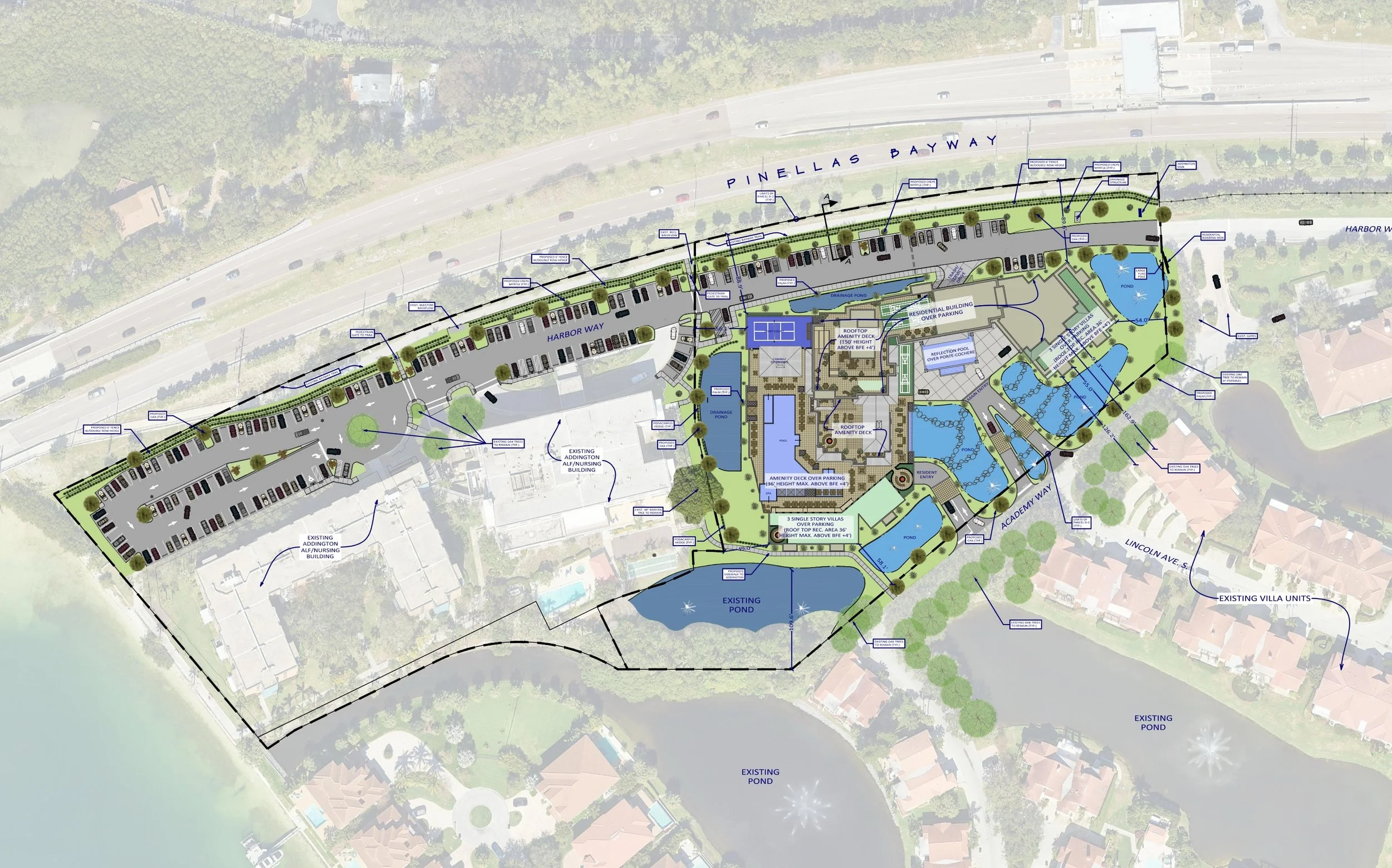 Site plan for a proposed 12-story, 96-unit condo tower at Marina Bay in southwest St. Pete | Anderson Lane Inc