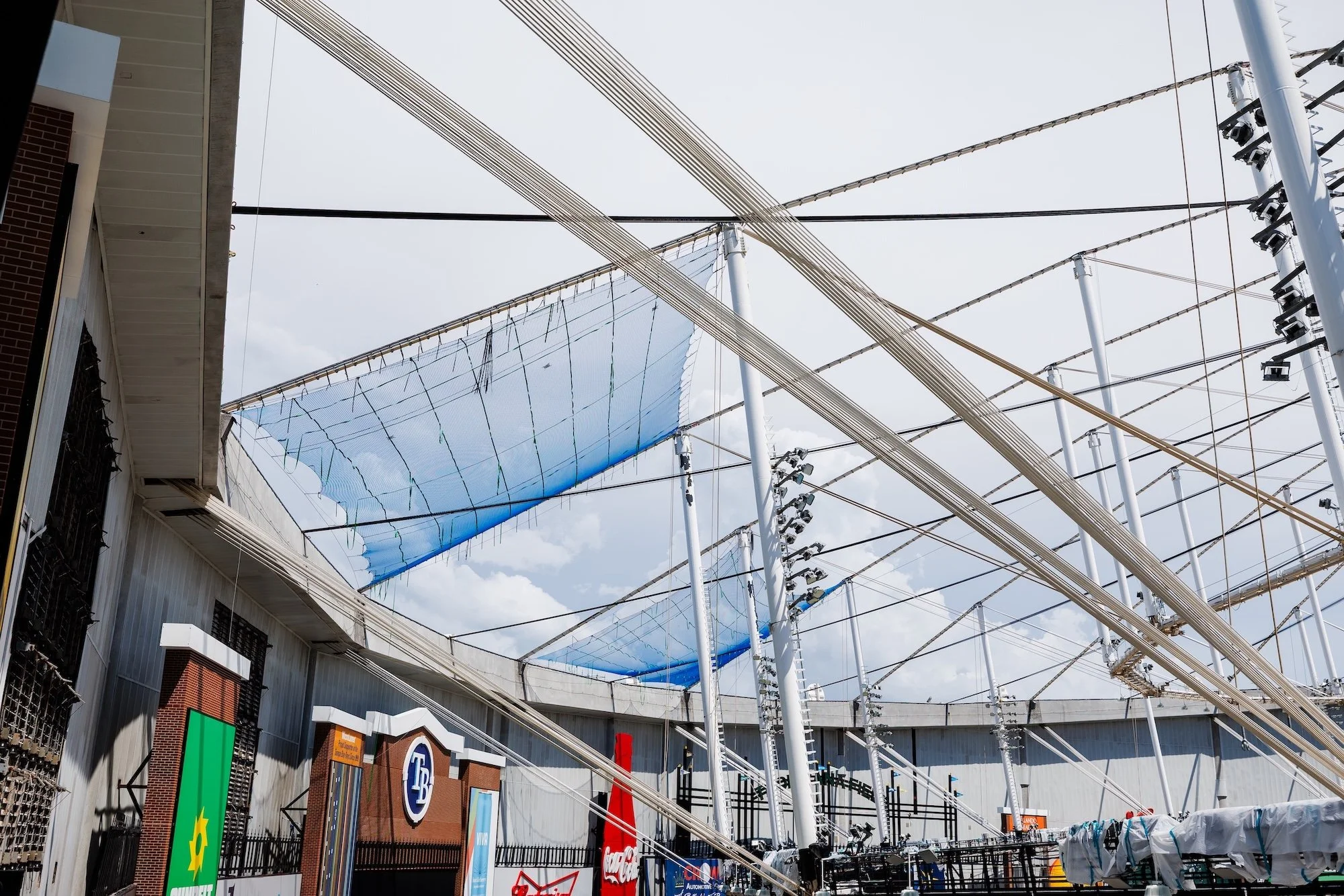 new netting being installed above the outfield at Tropicana Field in downtown St. pete | city of st. pete