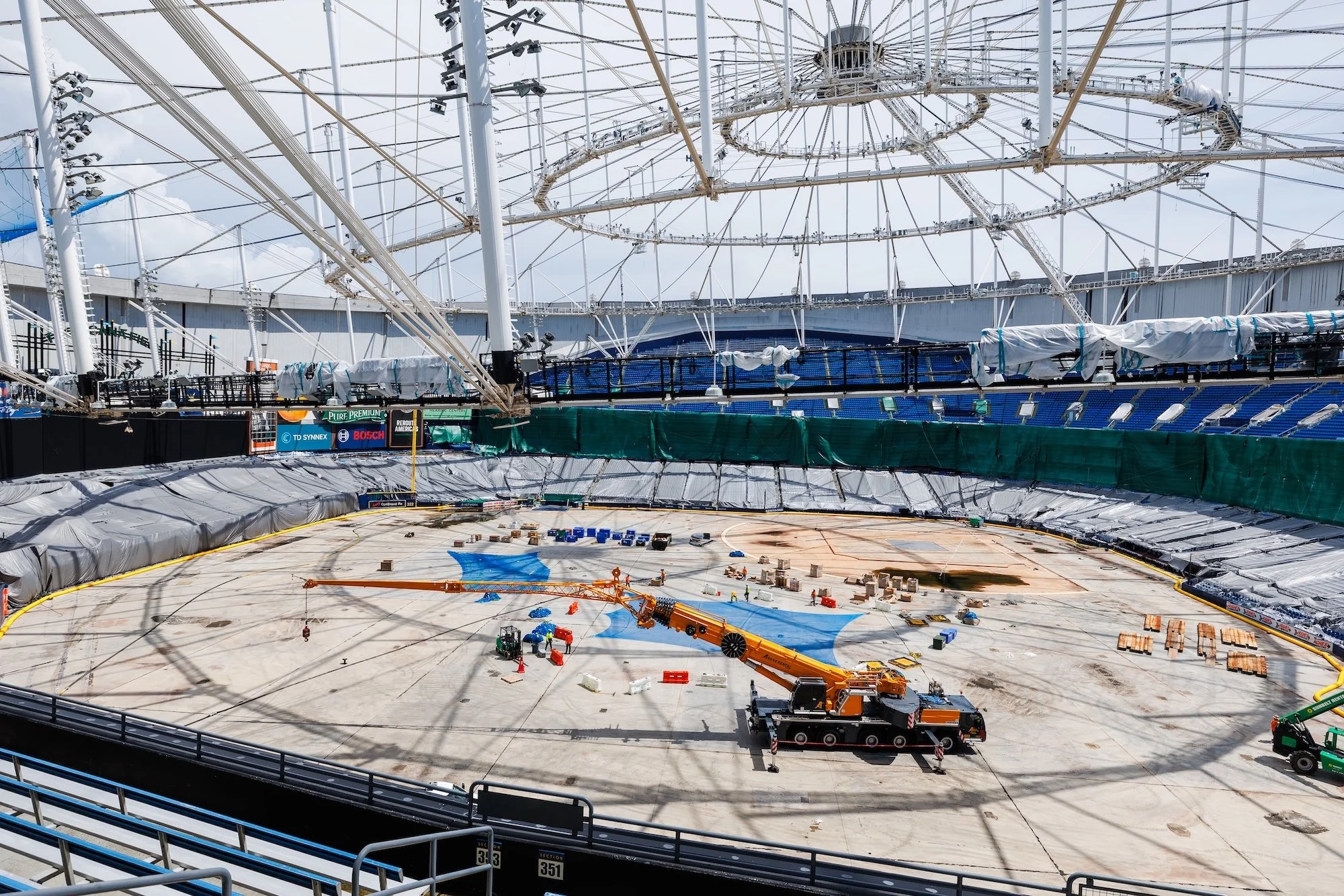 The most significant and costly repair will be the full replacement of Tropicana Field’s roof, scheduled to begin in August. The new roof will be made of PTFE (polytetrafluoroethylene) material that is translucent, thicker than the original, and designed to withstand hurricane winds up to 165 miles per hour.