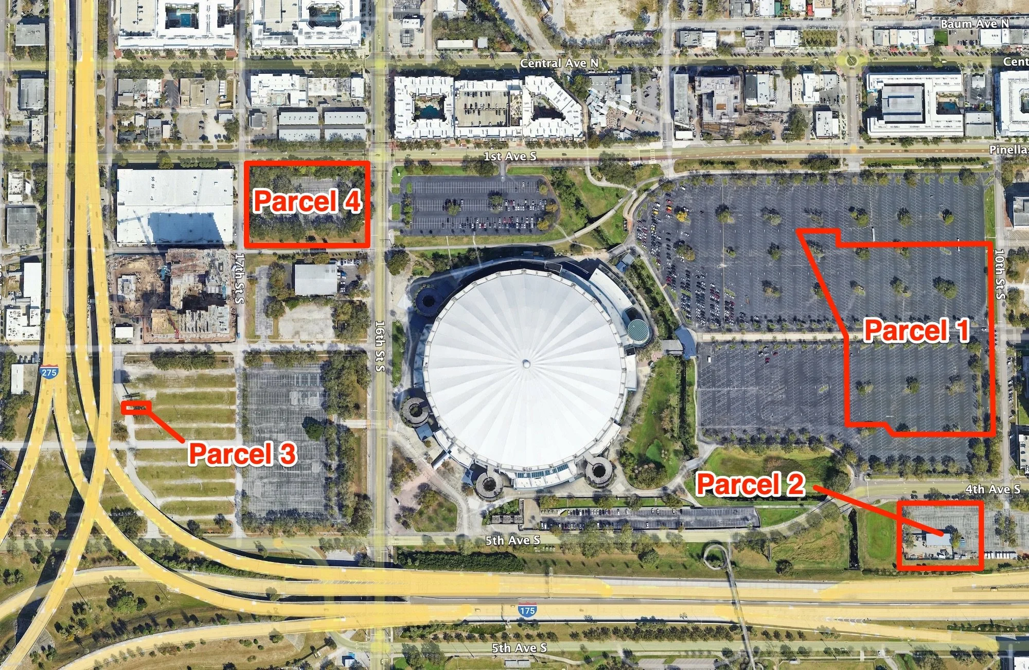 A new licensing agreement allows the Rays to keep using four existing parcels on the city-controlled Tropicana Field site for parking, storage, special events, and an exterior marquee | Google Maps