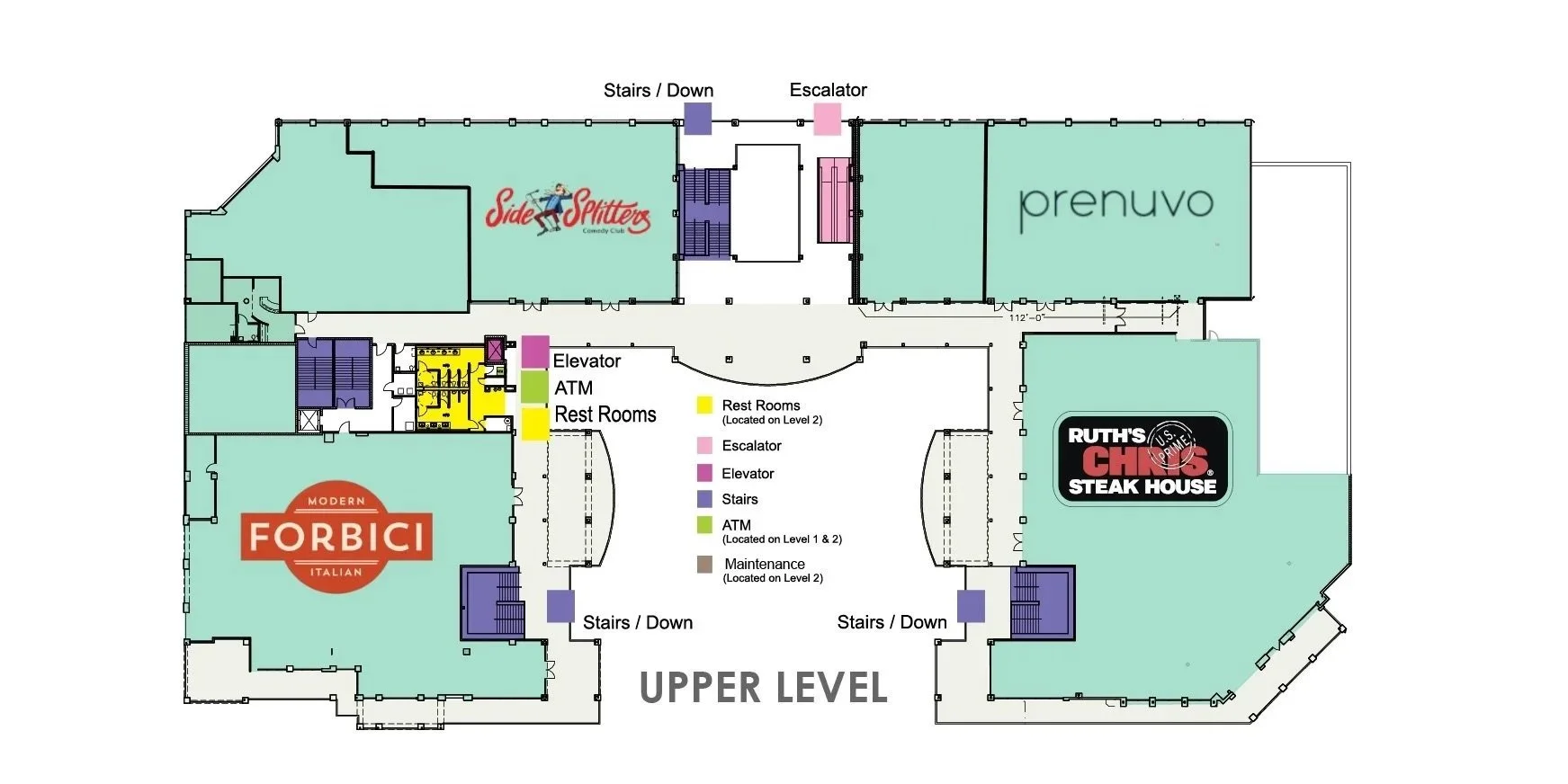 Map of Sundial’s upper level showing Side Splitter’s Comedy Club coming to the space formerly home to Farmtable Cucina | Sundial