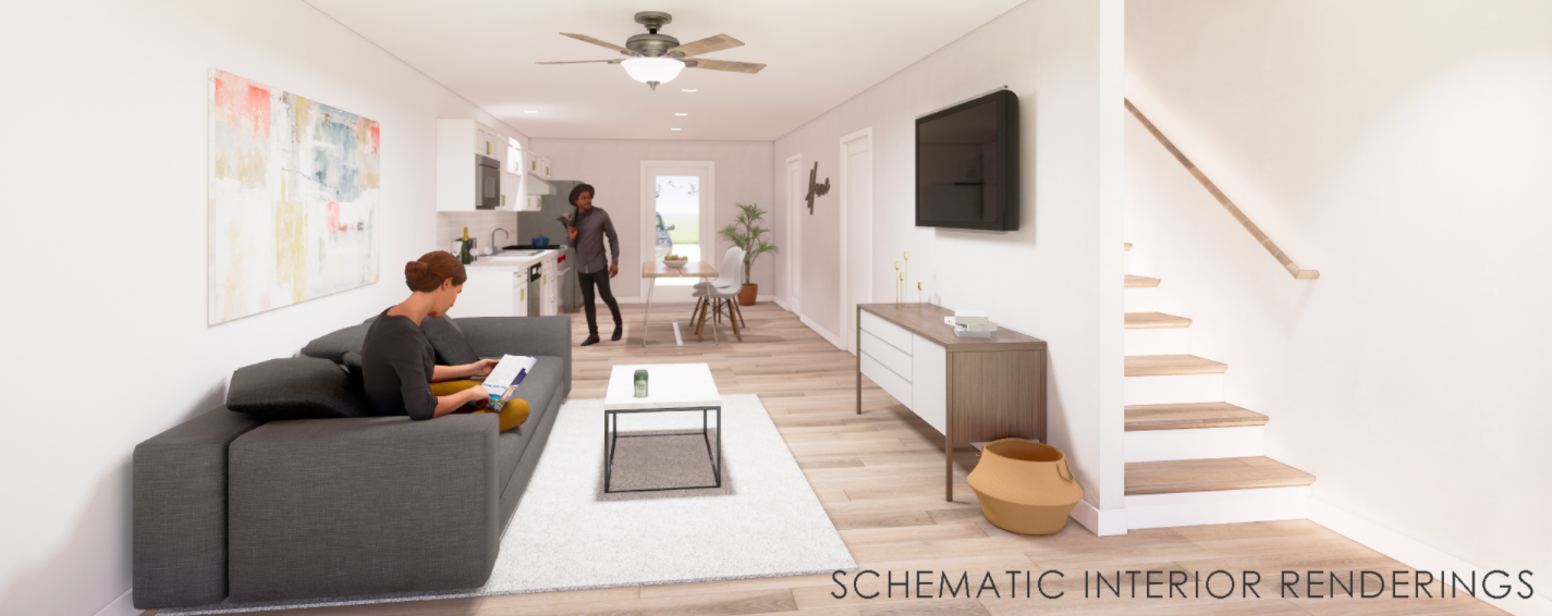 The 11 units in the Sixteenth Square Townhomes development - outfitted with granite kitchen countertops, wood floors, and modern finishes - are all affordable homes for residents earning up to 100% of the Area Median Income (AMI).